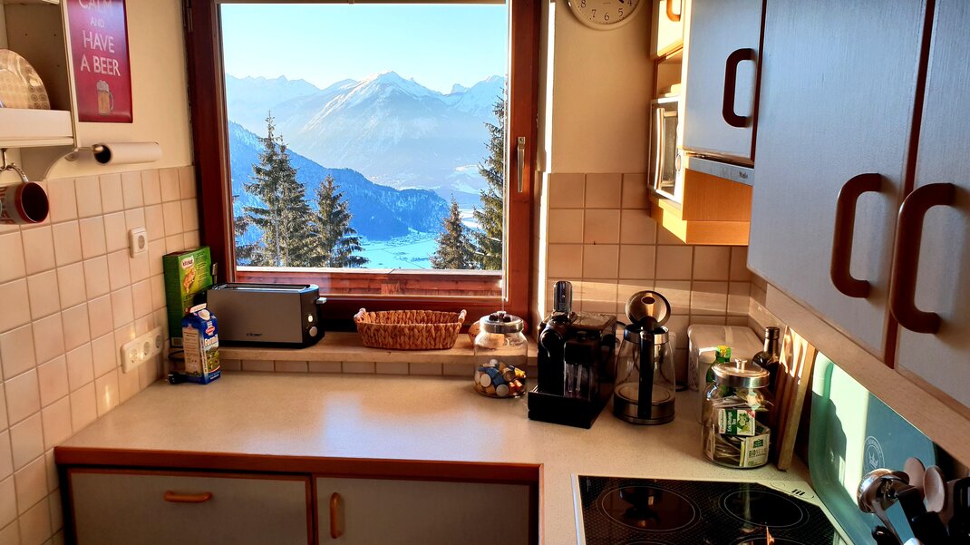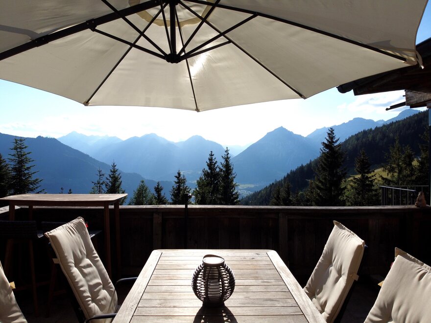 Gelegen auf 1200 Meter haben Sie freie Sicht in das Alpbachtal, auf das Zillertal und Inntal, sowie atemberaubende Sonnenuntergänge über dem Karwendelgebirge.