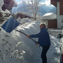 Der Gastgeber Stanislaus beim Schneeschaufeln für seine Gäste