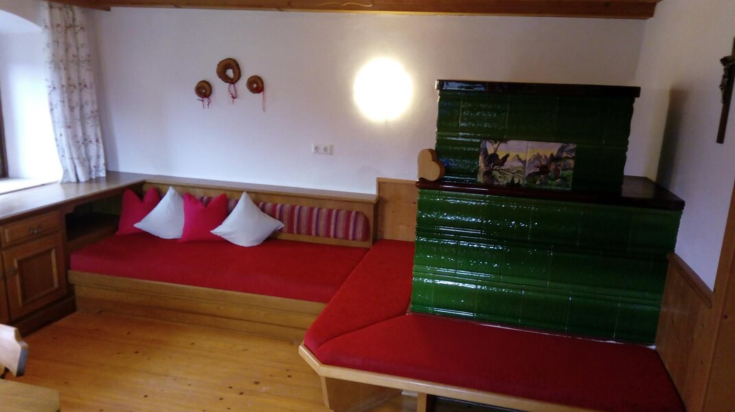 Der wunderbare Kachelofen in der Bauernstube läd zum verweilen mit Familie oder Freunden ein.