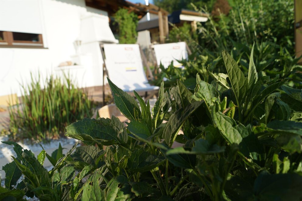 In unserem bunt blühenden Garten finden sich nette Plätzchen zum Sitzen und Genießen, zum Sonnenliegen - umrahmt von einem einzigartigen Panorama.