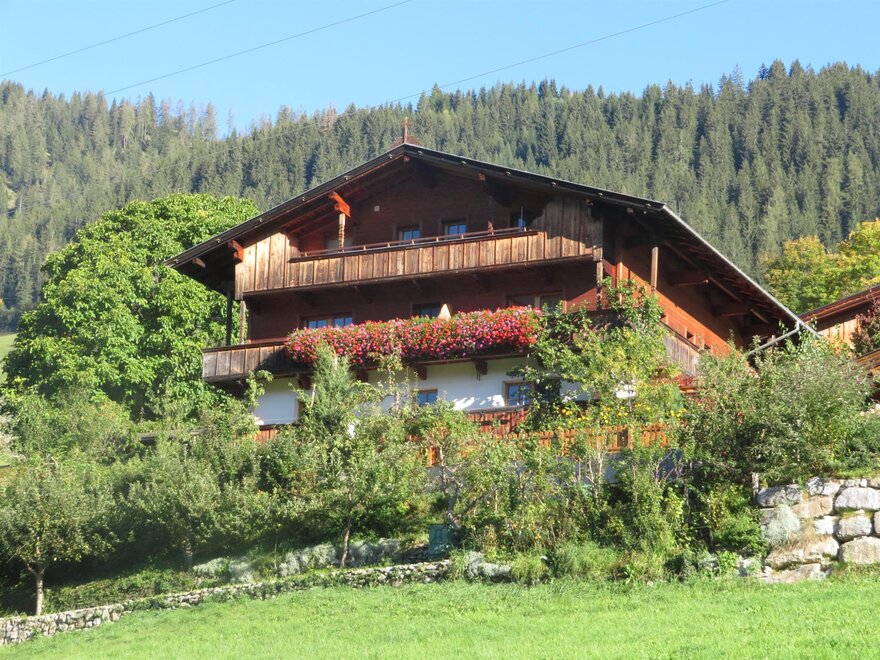 Gehzeit zur Bushaltestelle 10 Minuten, oder auf einem Wanderweg 15 Minuten zur Talstation der Wiedersbergerhornbahn.