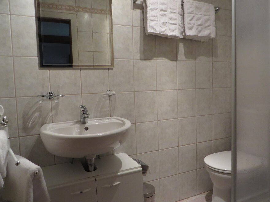 Die geräumige Wohnung Nr.2 hat einen Vorraum, ein Schlafzimmer, eine kleine Küche mit Geschirrspülmaschine, ein Wohnzimmer mit gemütlicher Essecke, DU/WC, Sat-TV und Südbalkon.