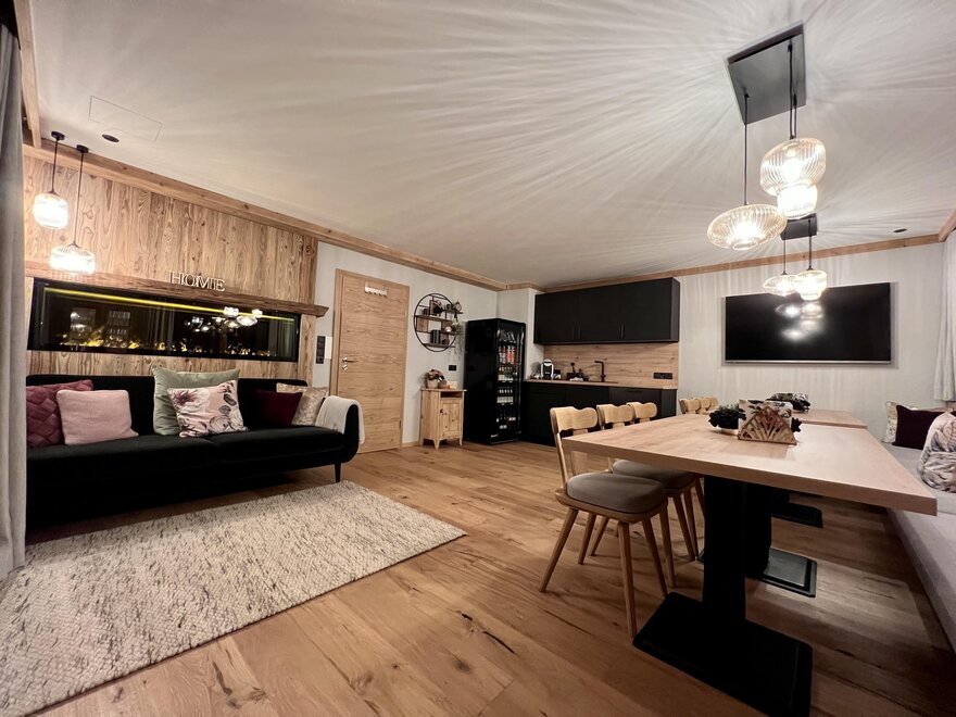 Die Ferienwohnung Alpin liegt im 1. Stock und weist eine Fläche von 65m² auf. In dieser großzügigen Wohnung ist Raum für 1 bis 4 Personen. Sie verfügt über 2 Schlaf- sowie 1 Badezimmer (mit Balkon, Radio, Dusche, WC, Handtuchtrockner, Kosmetikspiegel, Fön). Beide Schlafzimmer verfügen über 1 Doppelbett/ Boxspringbett und Balkon. Die moderne Ausstattung entspricht höchsten Wohnansprüchen: eine voll eingerichtete Küche mit Radio, Induktionsherd, Backofen, Geschirrspüler, Kühlschrank mit Tiefkühler, Toaster, Wasserkocher und Nespresso-Kaffeemaschine, sowie Flatscreen in einem Schlafzimmer und in der Küche. Die Aussichtsterrasse lädt zum Verweilen ein.