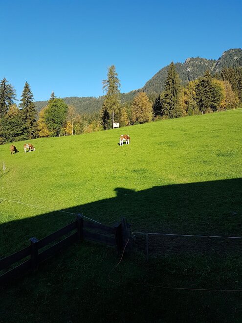 Unser Zimmer "3" Ist ein sehr helles geräumiges Einzelzimmer mit Dusche und WC. Auf dem grossen Balkon mit Blick auf die Berge können sie im Liegestuhl entspannen.