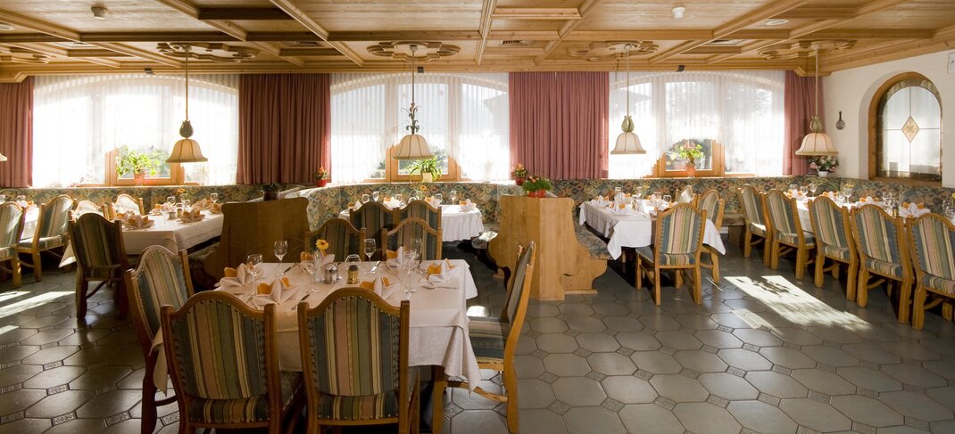 Gastlichkeit hat bei uns Tradition, dazu gehören für uns auch gute Stimmung und Geselligkeit. Wir möchten, dass Sie sich in Ihrem Urlaub von uns verwöhnen lassen und dass für Sie in dezentem Luxus sowohl internationales Flair als auch familiäre Atmosphäre fühlbar und erlebbar sind. Zur 'urigen' Stimmung trägt natürlich im Restaurant der Blick durch die Fenster in den Pferdestall bei. Je nach Jahreszeit können Sie vielleicht eine Stute mit ihrem kleinen Fohlen sehen.