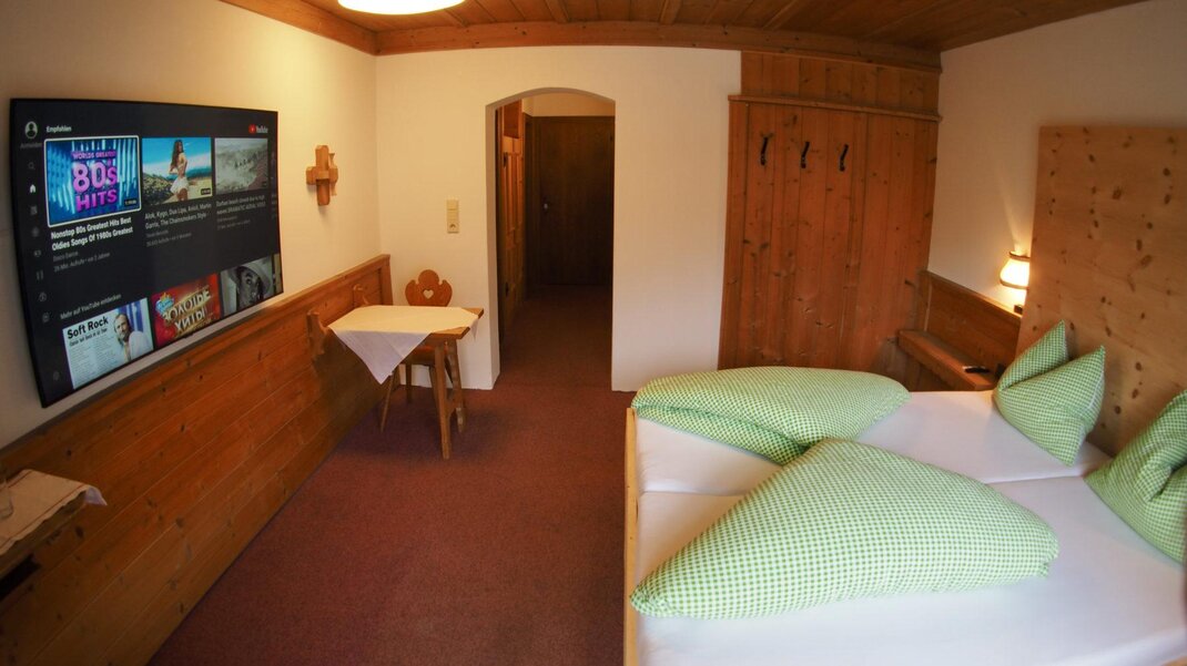 Alle unsere Zimmer sind im Tiroler Stil mit Balkon, Dusche oder Bad/WC, TV