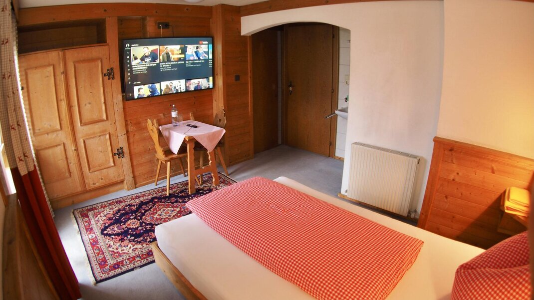 Alle unsere Zimmer sind im Tiroler Stil mit Balkon, Dusche oder Bad/WC, TV