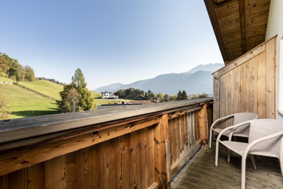 Freiraum und Weite - genießen Sie den traumhaften Ausblick aus dem 3. Stock auf das Sonnwendjoch. Angenehme Details und helles Holz sorgen für eine wohnliche Atmosphäre. Zur Grundausstattung gehören Dusche, WC, Tresor, Kabel-Flat-TV, Telefon, WLAN, Schreibtisch Holzboden, Sitzecke und ein Balkon. Mit seinen 23m² bietet das Zimmer ausreichend Platz für ein Zustellbett gegen Aufpreis.
