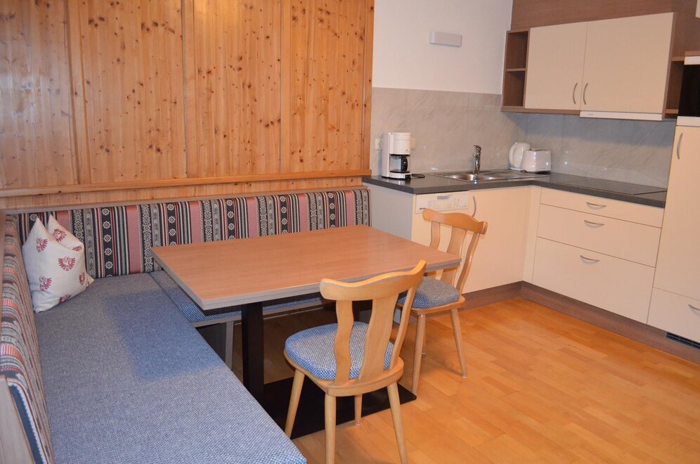 Auch in der Wohnküche: Flat TV und eine gemütliche Sitz-Essecke mit großem Esstisch.