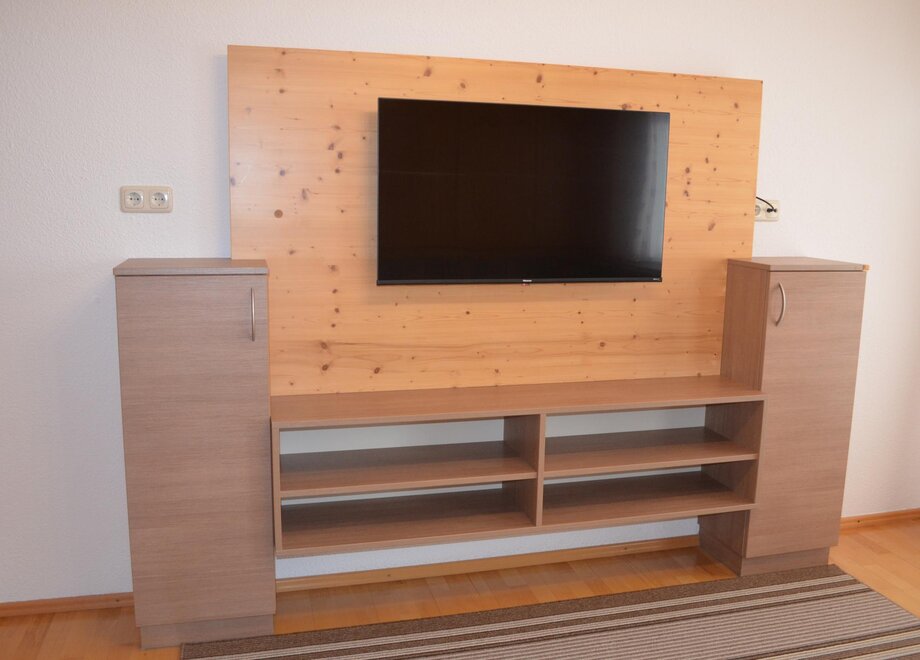 Auch in der Wohnküche: Flat TV und eine gemütliche Sitz-Essecke mit großem Esstisch.
