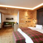 Mit Blick ins das Schönste Dorf Österreichs oder einem fantastischen Blick in den Garten und zum Bergpanorama – durch die großzügigen Glasflächen besonders eindrucksvoll. Ein gemütliches Sofa oder Sitzecke laden zum Flanieren ein, der heimische Zirben-Echtholzboden lädt zum Barfusslaufen ein. Eines der Zirbenzimmer verfügt über ein extra Einzelzimmer (Matratzengröße 0,90 x 2,00 m).