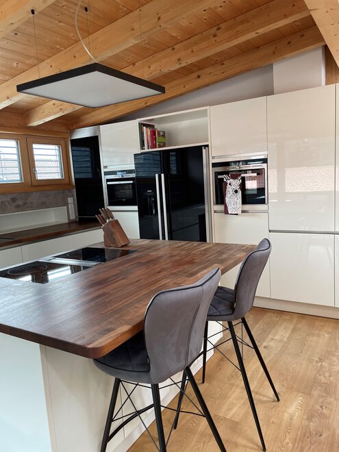 Uns ist es wichtig Altes zu bewahren und mit neuen Ideen zu beleben. So haben wir das Elternhaus von Günther liebevolle in ein Penthaus mit direkten Blick in die Berge um gebaut.