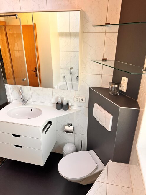 Badezimmer Anzahl: 1, Dusche, Dusche, WC, WC, Badewanne, Badewanne mit integrierter Dusche, Bad