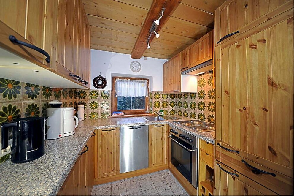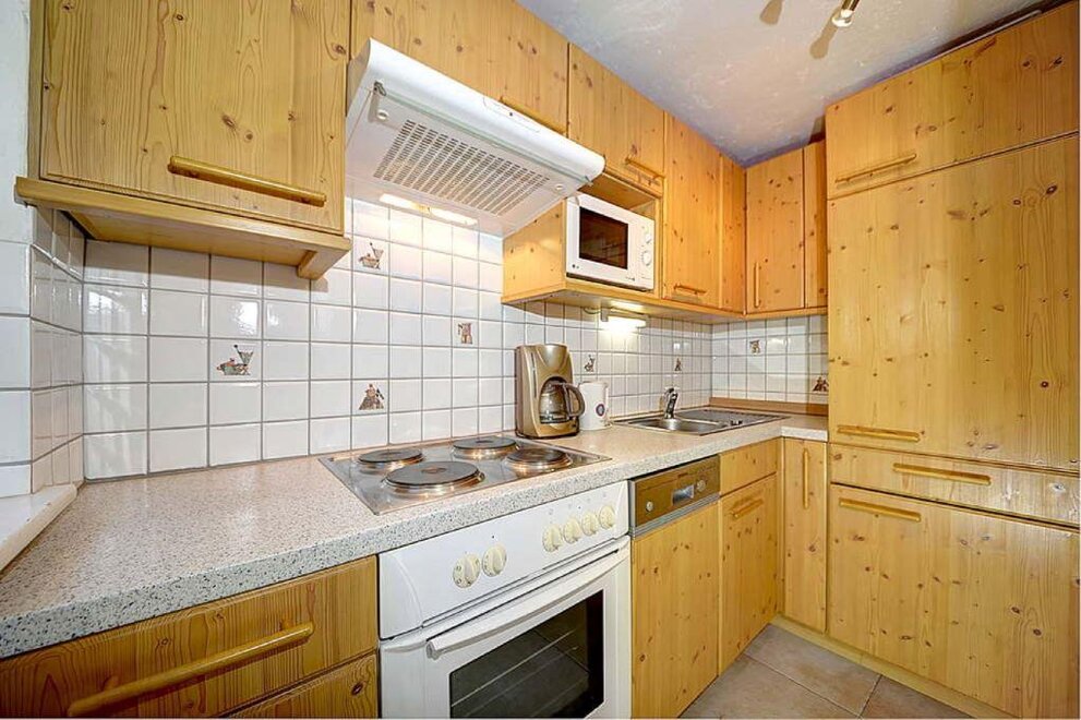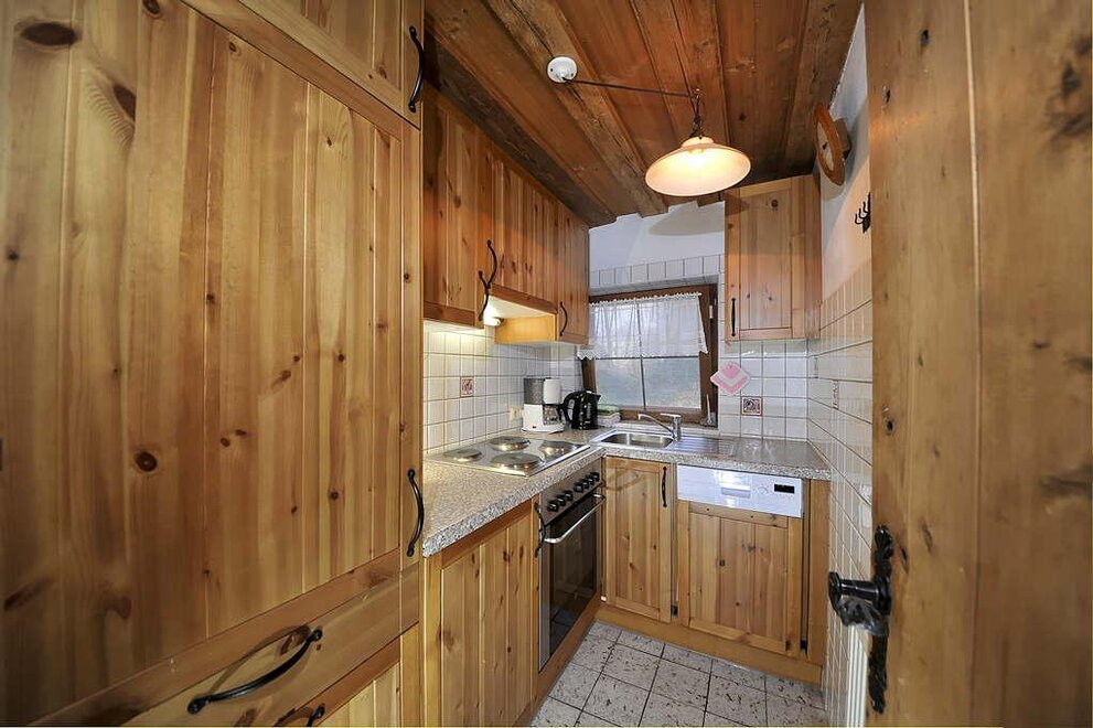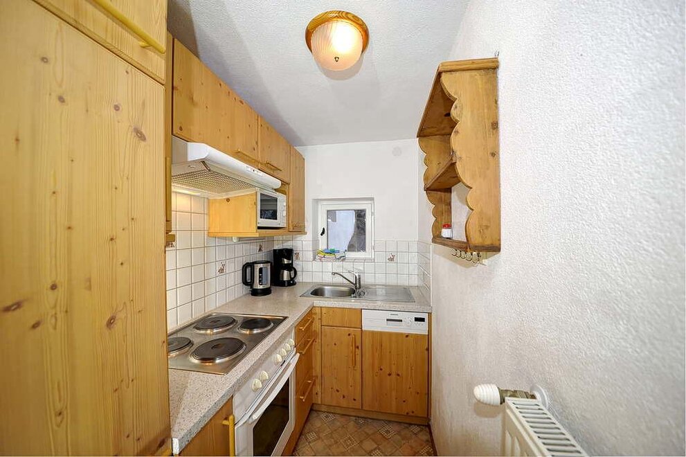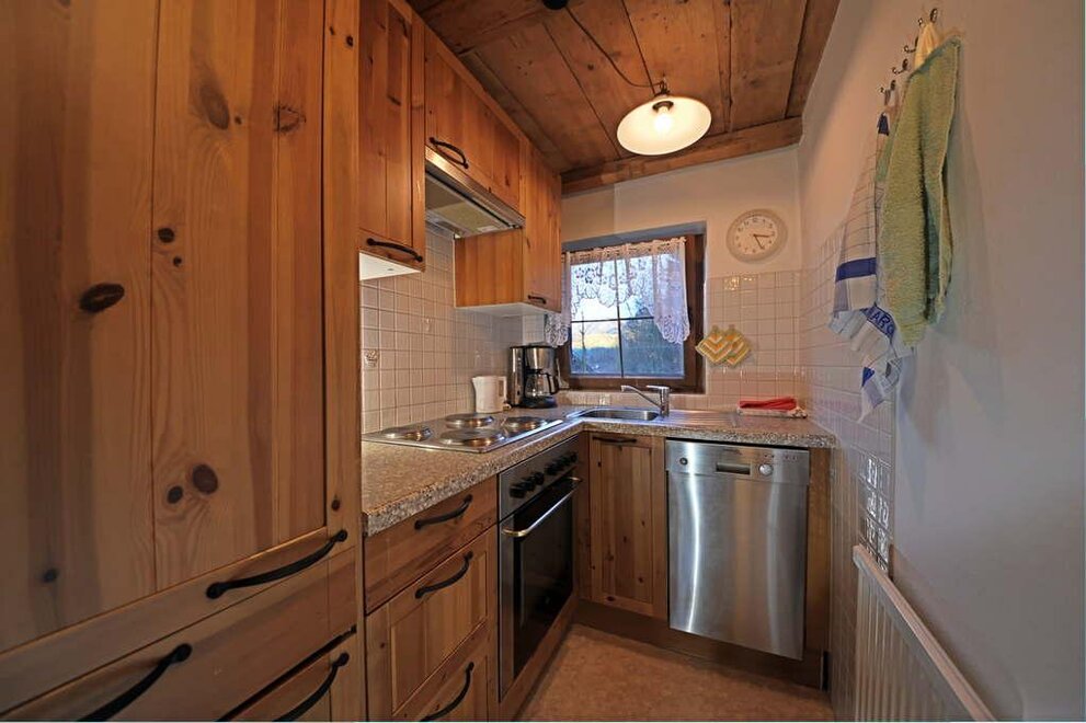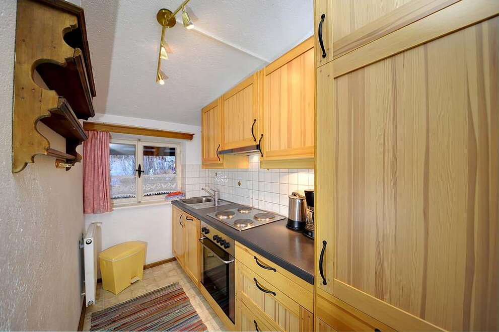 Die Wohnung umfaßt einen Wohnraum mit Eckbank und Bauerntisch für 4 Personen (in diesem Raum ist eine Bettnische für 2 Personen untergebracht, die tagsüber als Couch verwendet wird), einen Schlafraum für 2 Personen mit eingebauten Schränken, eine kleine Küche mit E-Herd und Kühlschrank (keine Spülmaschine!), ein Bad mit WC, Dusche und Waschbecken
