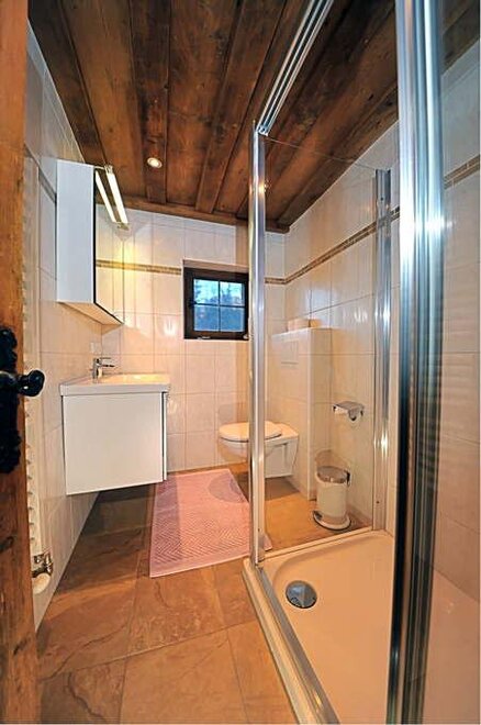 Das Appartement liegt im Parterre des Alpbacher Hauses und verfügt über einen gemütlichen Wohnraum, mit Holz vertäfelt und alten Bauernmöbeln eingerichtet, eine Essecke für 6 Personen, eine Wohncouch, die als Bett verwendet werden kann, ein Schlafzimmer mit Doppelbett, eine Küche mit E-Herd, Kühlschrank und Geschirrspüler und ein Bad mit Badewanne, Waschbecken, WC. Schöne Liegewiese unmittelbar vor dem Haus.