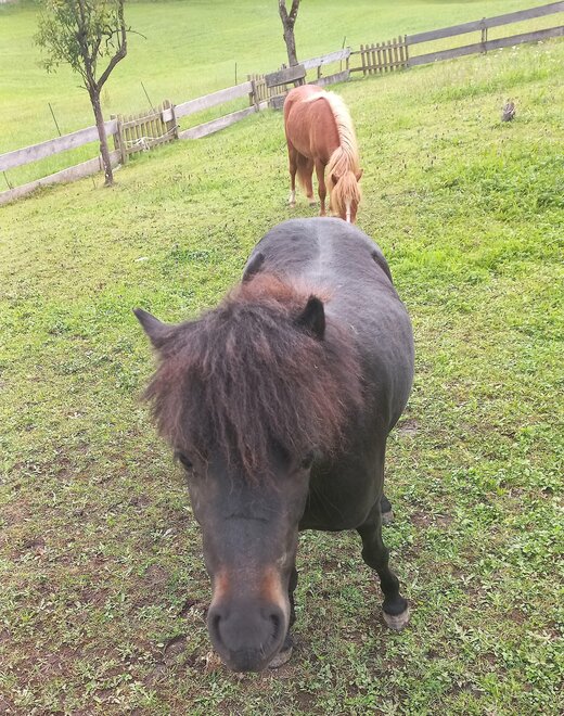 Auf unserem Hof leben saisonsbedingt Kaninchen, Enten, Schweine, Schafe, Ziegen, Hühner, Kälber, Katzen und Hündin Ina. Ganz neu bei uns sind die beiden amerikanischen Miniaturpferde Fini & Ilsa, die mit ihrem sanften Wesen und ihrem charmanten Charakter die Herzen unserer Gäste im Sturm erobern. Genießen Sie Natur, Entspannung und tierische Begleiter!