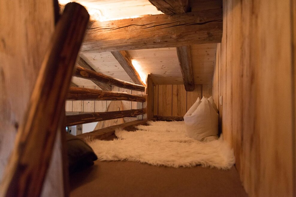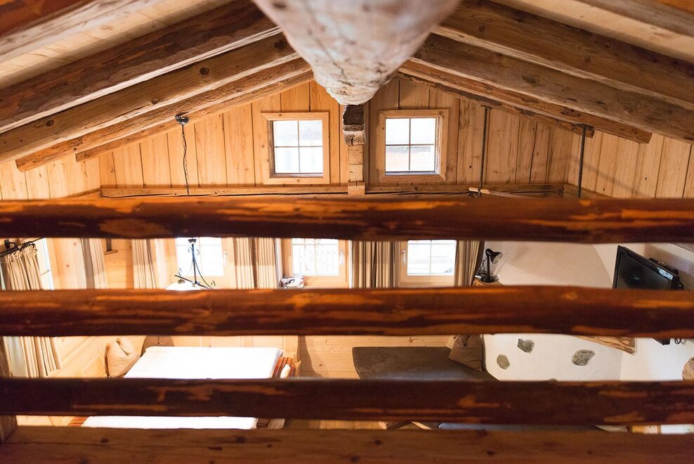 Das Holz von einer ca. 300 Jahr alten Hütte wurde zu einer gemütlichen Almwohnung umgewandelt.