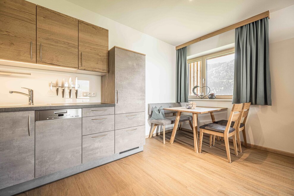 Das Appartement Auszeit befindet sich im 2. Obergeschoss (60m2) und bietet Platz für bis zu vier Personen. Das moderne Appartement mit Blick auf den Rattenberger Schlossberg sowie das Inntal verfügt über zwei getrennte Schlafzimmer mit einem großzügigen Doppelbett sowie einem Stockbett und einem Wohn - Essbereich. Die Küche ist voll ausgestattet: Nespresso Maschine, Wasserkocher, Kühlschrank mit Gefrierfach, Backofen, 4- Platten Cerankochfeld, Geschirrspüler, Kochuntensilien und Geschirrtücher. TV Geräte finden Sie im Wohn - Essbereich wie auch in den Schlafzimmern vor. Ebenfalls bietet das Appartement eine gemütliche Essecke sowie ein Sofa an.