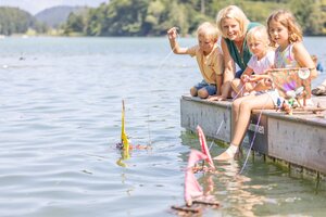 In the afternoon, a special task awaits young and old water enthusiasts. You can build your own little raft and test it out on the beautiful lake Reintalersee.