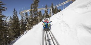 The Alpbachtaler Lauser-Sauser is a fast-paced, year-round* Alpine coaster with a downhill track of 1,035 m and a height difference of 134 metres. With Austria's highest in-line twist of 18 metres and other great jumps, it guarantees fun and action for passengers big and small.