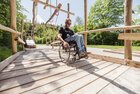 It serves as both an accessible playground for children and a place of inclusion with barrier-free fitness equipment for everyone. Whether you are in a wheelchair or using a walker, there is something for everyone: an inclusion carousel, gymnastic rings, a wheelchair course, a wobble board, and much more.