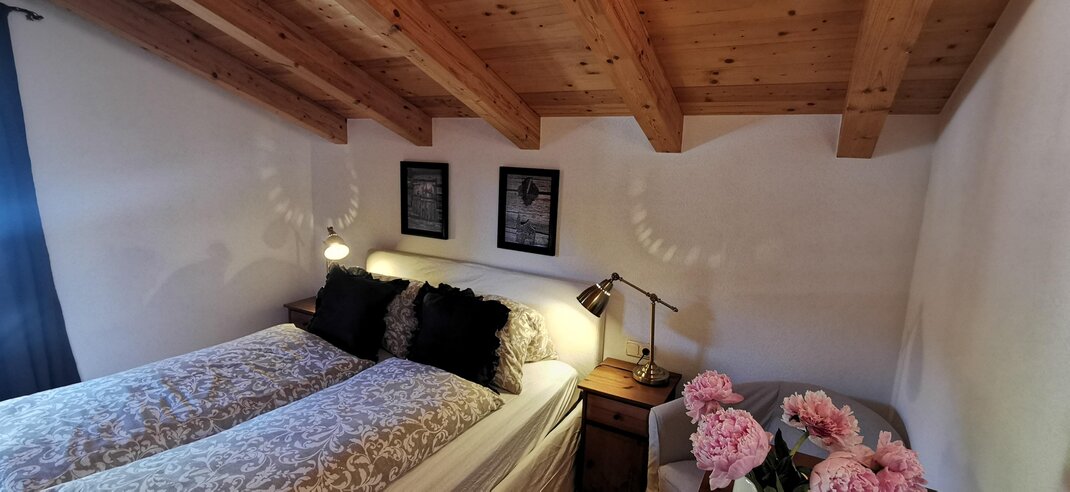 ... is a charmy loft appartement with 100 m2, which offers 3 bed rooms. Two of them with french beds and one of them with 2 single box-spring beds. There is a full equiped kitchen with breakfast bar and a living room with sitting area, flat-tv, scandic oven, sound system, big dinner table for six guests. The bathroom has bath, shower and a double wash basins. In the hall, the is a little chillout are for reading. There is parking space for up to 3 cars for our guests and a deposit for ski equipment or bikes at the entrance.