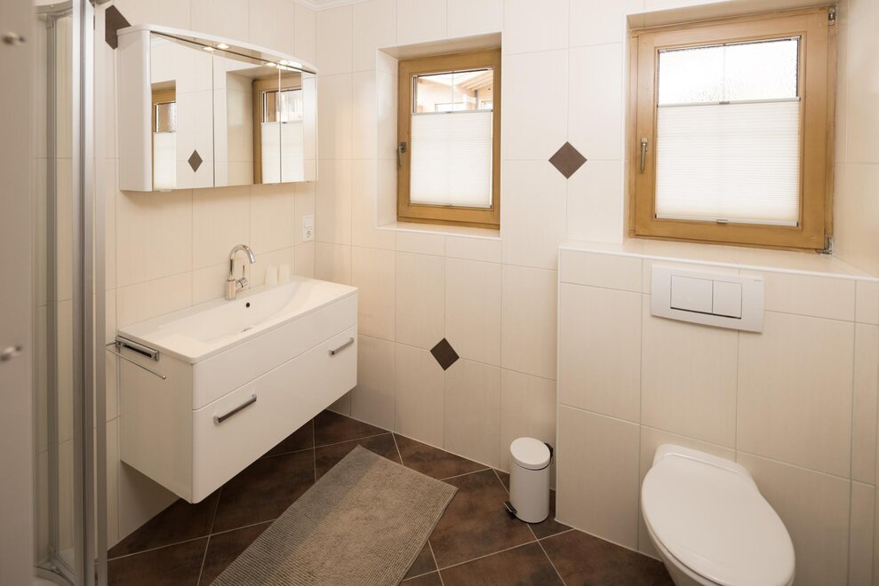 The flat Panorama is unique in Alpbach and is divided into two floors. On the lower floor you will find the fully equipped kitchen, the cosy living room, with a large dining area for the whole family to sit together in the evening, TV couch and satellite TV, a double bedroom and a bathroom with shower/WC. A staircase leads up to the attic floor, where there are another 3 bedrooms and a bathroom with shower, corner bath and a separate toilet. From both floors you have access to the spacious balconies.