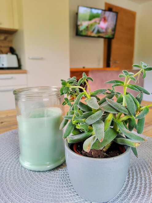 The modern kitchen equipment - kettle, coffee machine, toaster, microwave, dishwasher, electric stove, fridge, flat screen tv, cosy seating area and bathroom with rain shower, cosmetic mirrow, towel dryer and WC meet the highest demands.