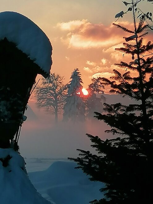 Or, you enjoy a romantic winter walk through the woods and tobboggan runs starting direcly at the farm or building a snowman in front of the house!