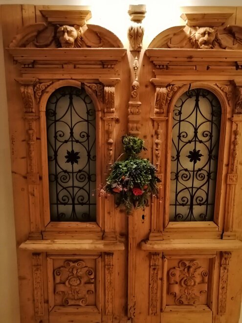 The windows are made of untreated larch wood, and we did not add a balcony because it does not correspond with the character of the house, according to the preservation office.