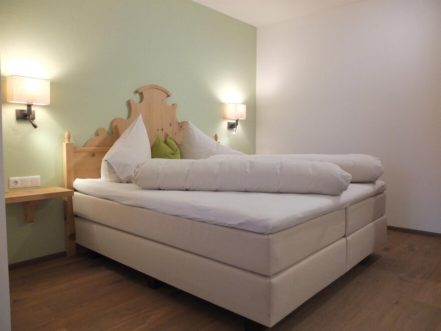 These comfortable, newly renovated rooms leave nothing to be desired. Natural materials, cozy boxspring beds, desk and flat screen - modern comfort is combined with simple traditional elegance.