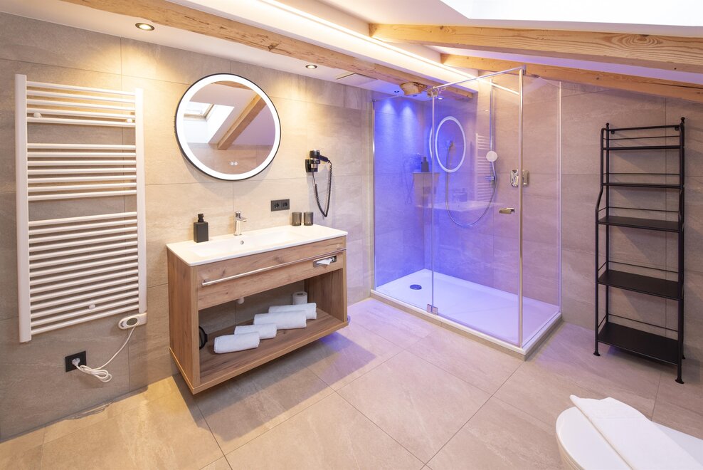 Tastefully furnished double room with shower/WC. The room has also a balcony with overlooking the mountains.