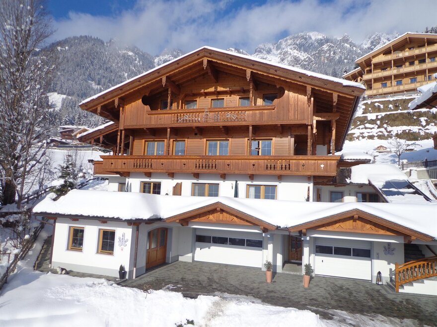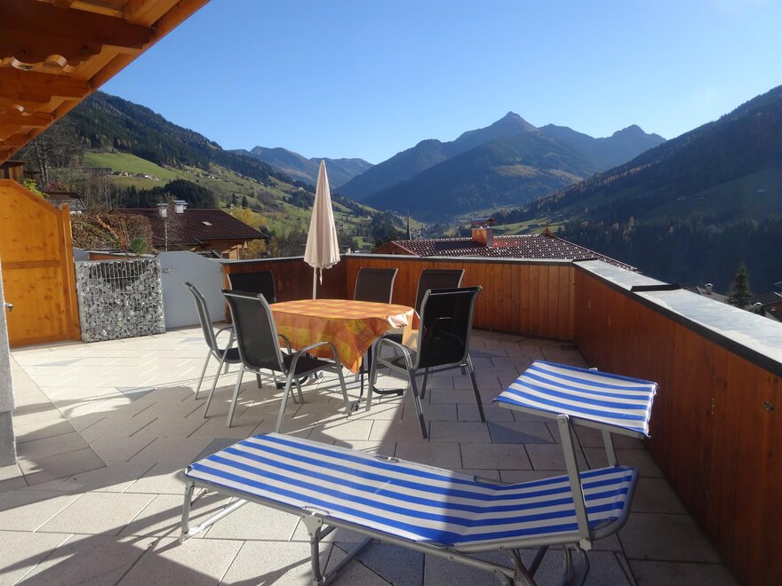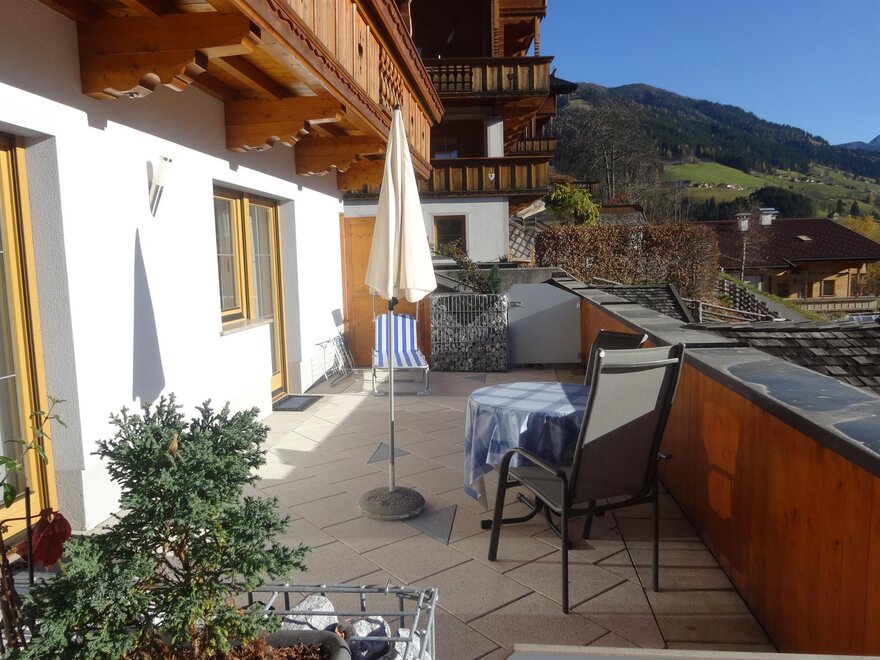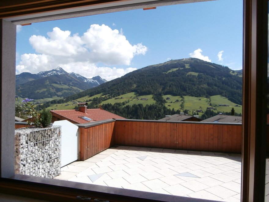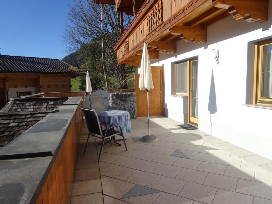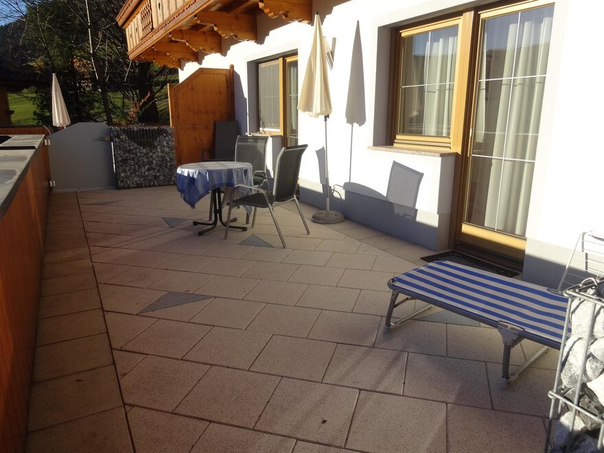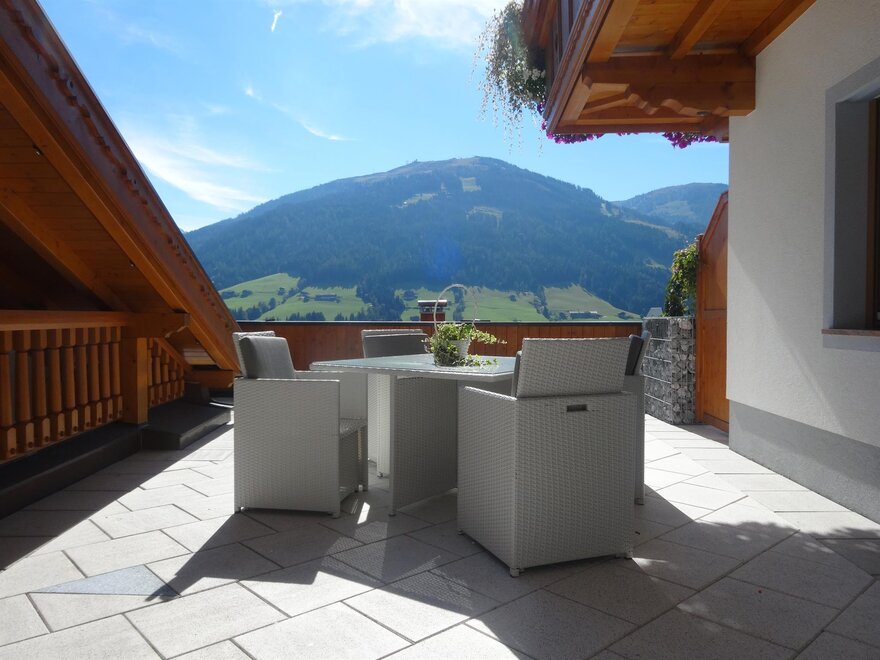 The heart of the house is also a terrace of 45 m² with garden furniture and deckchairs for a relaxing holiday!The terrace is south facing and above all quiet - with a fantastic view of the ski area "Ski-Juwel" and the wonderful mountain and hiking world of Alpbach!