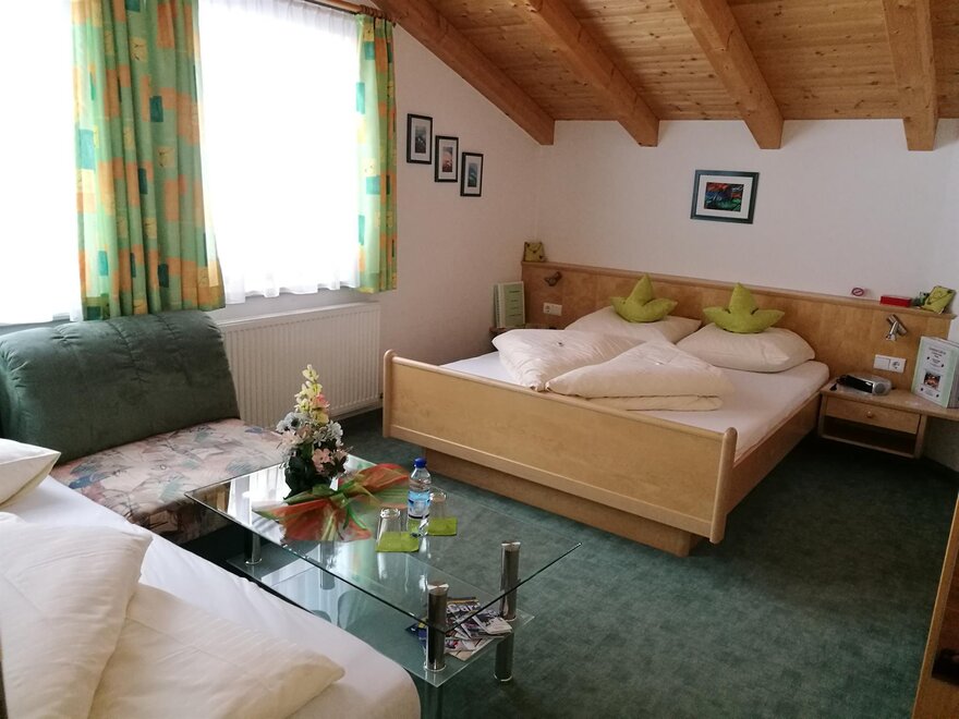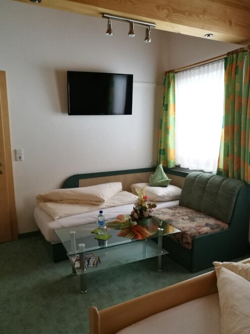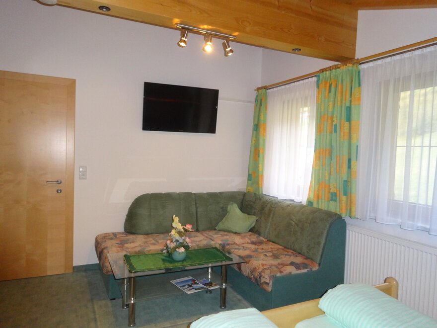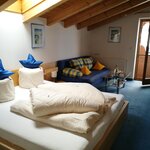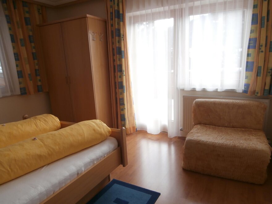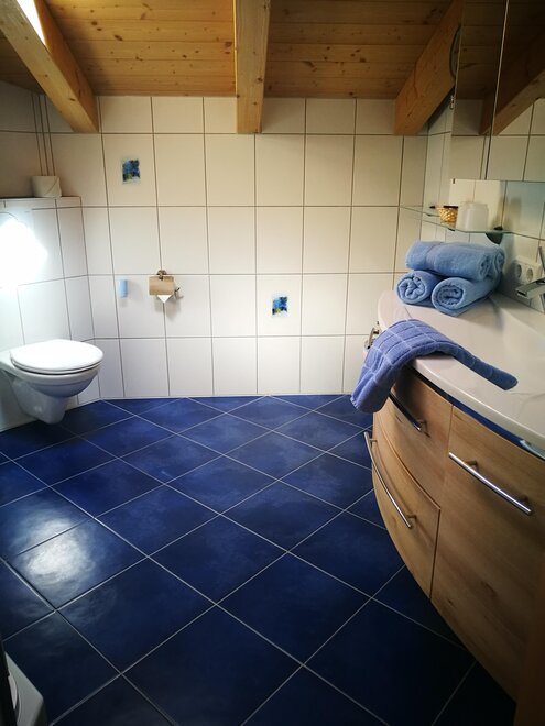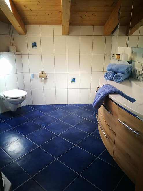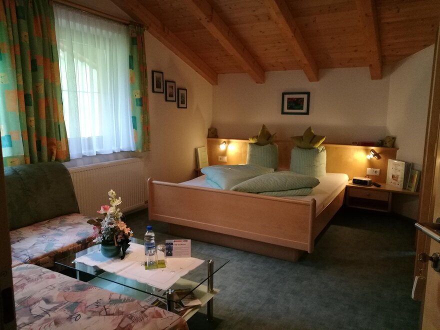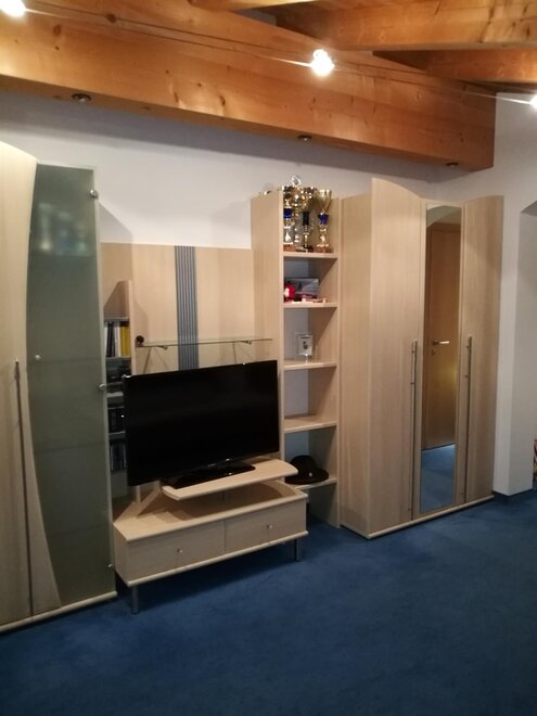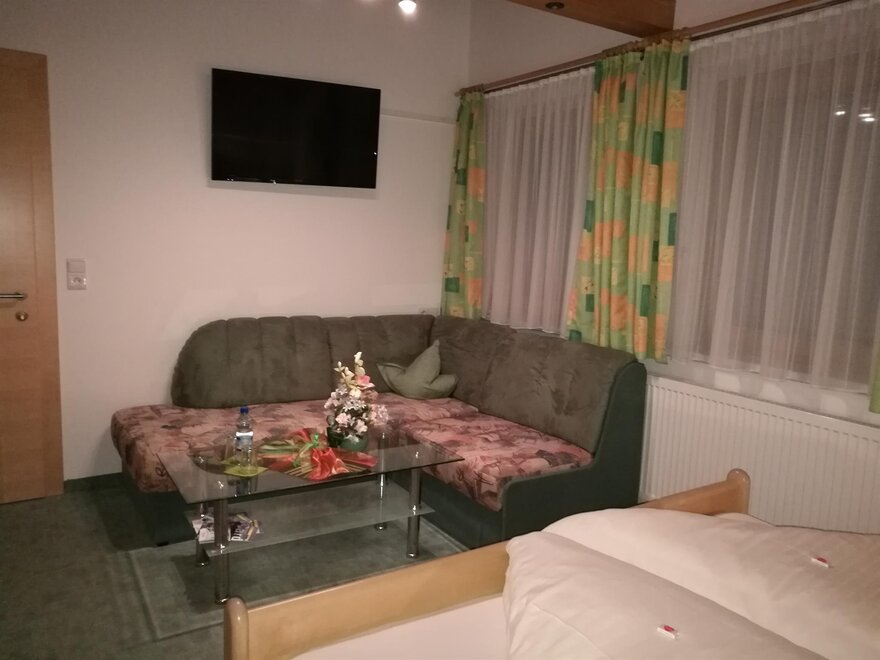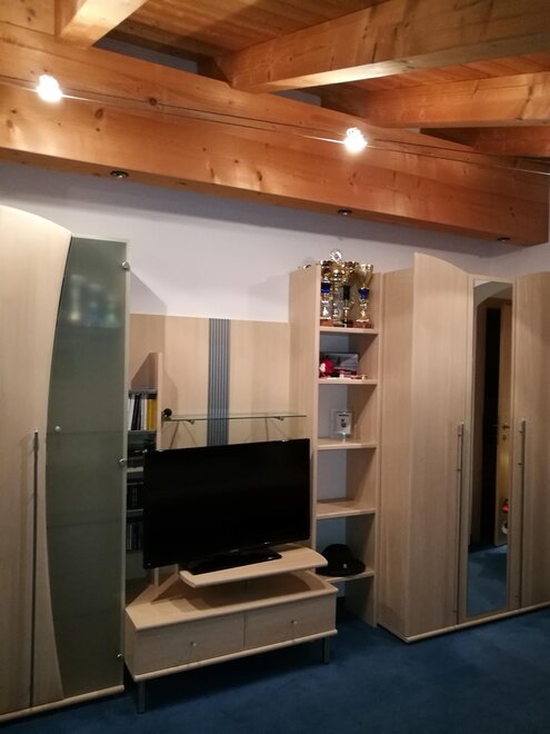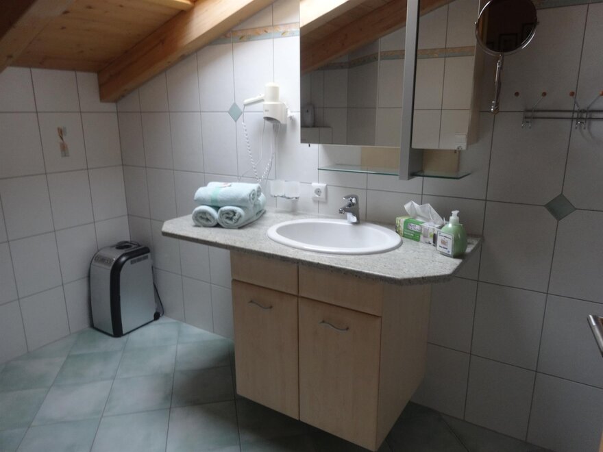 This dreamlike room (approx. 30 m²) with a comfortable couch corner and satellite TV is located on the ground floor, with its own bathroom (approx. 5 m²) with shower, WC and washbasin and a homely, cuddly roof frame and balcony, which is south facing and in a totally quiet location!