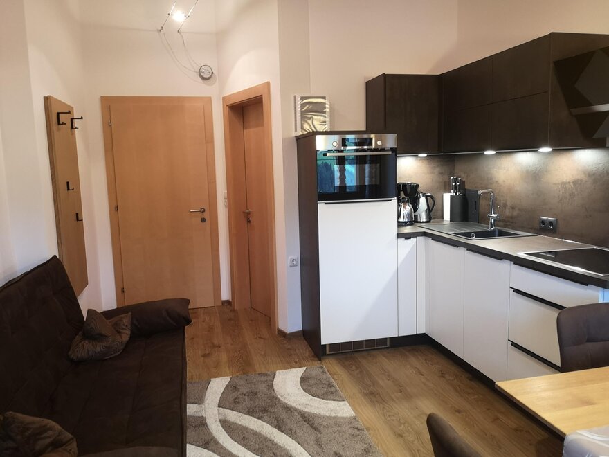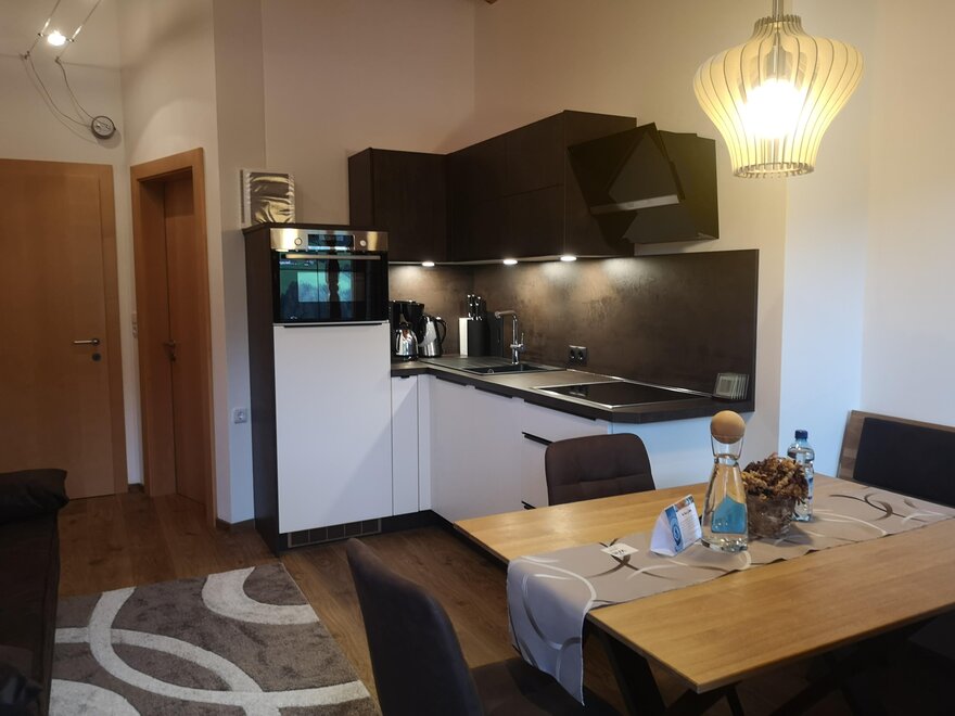 Unser liebevoll eingerichtetes "App. Blau" verfügt über ein Schlafzimmer (15 m²) und ein großzügig angelegte Wohnküche (20 m²), sowie ein Badezimmer mit Dusche, WC und Granitwaschtisch!