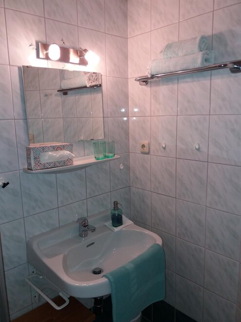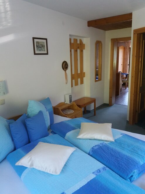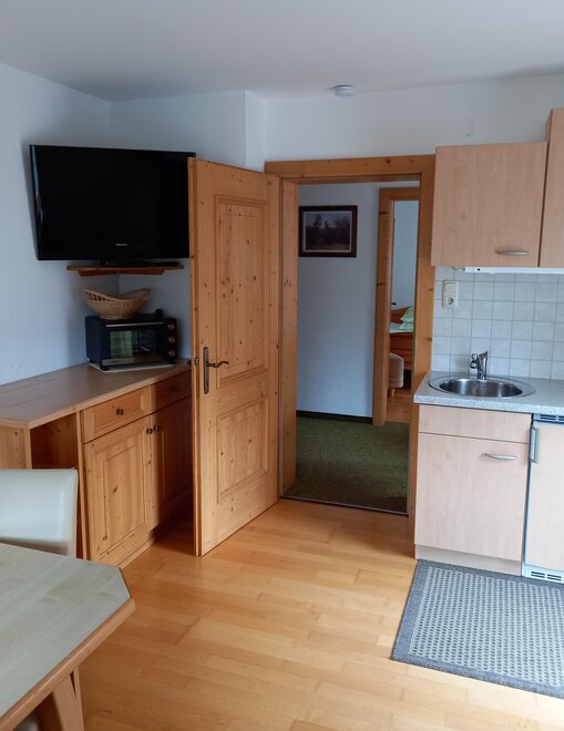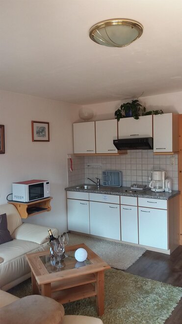 Consists of a very cozy living room with built-in dining area, leather sofa, small kitchen, microwave (on request small oven) and SAT / TV. A connecting door leads to the adjoining bedroom with shower / WC.