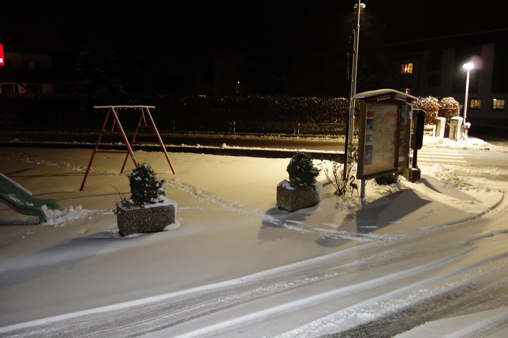 • right at the ski-bus/ hiking-bus/ bus stop