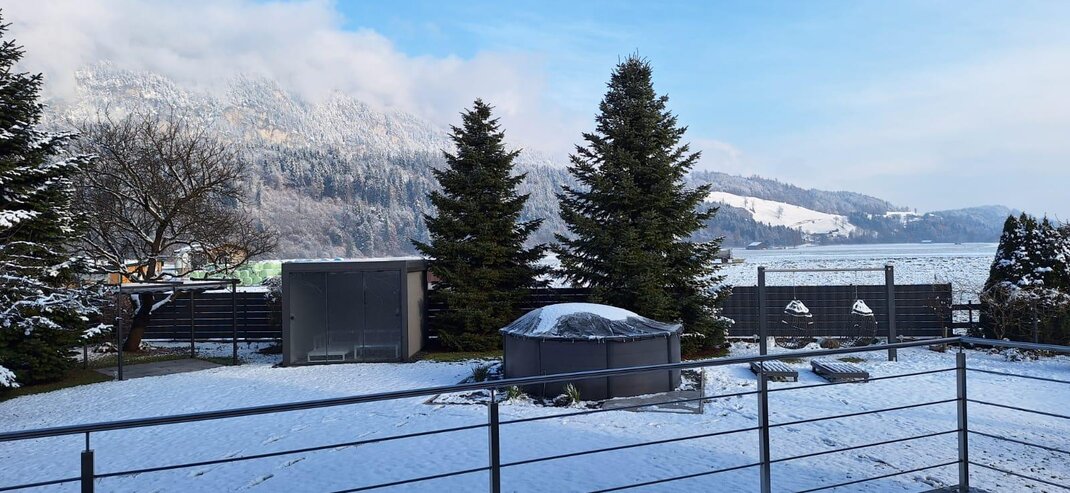 In this larger vacation apartment, over 60 m² in size, you will live like royalty. Fresh, bright colors and rooms invite you to linger. A balcony with cozy seating offers views of the Voldöpperspitze, the Sonnwendjoch, and the adjacent fields.