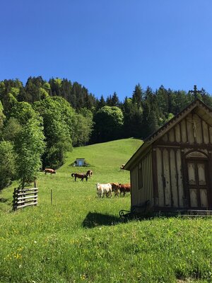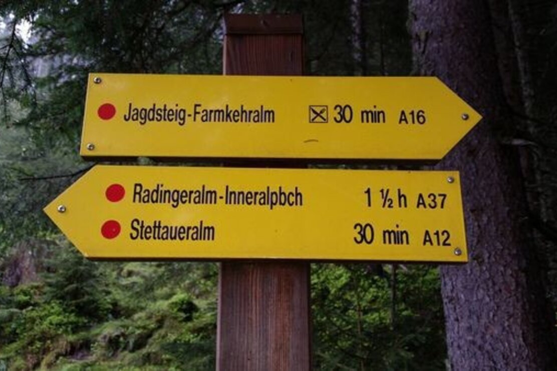From Inneralpbach at the Galtenberg Resort upwards to the Mountain Farmers Museum, here go right, following path A37 past and upwards via the path or partly over the forest road - always following the signposts "Alplkreuz." After about 1.5 hours you reach the Alplkreuz (a small hunting hut). At the hut, go right in the direction of "Farmkehralm." The next junction is passed straight ahead and the path continues to the upper pasture of the Farmkehralm. We continue straight ahead, slightly uphill and downhill, passing beautiful old stone pines. At the upper pasture (high alpine pasture) you then only have about 20 minutes downhill to the Farmkehralm. The return route leads directly behind the alm over the hunting path back to the starting point.