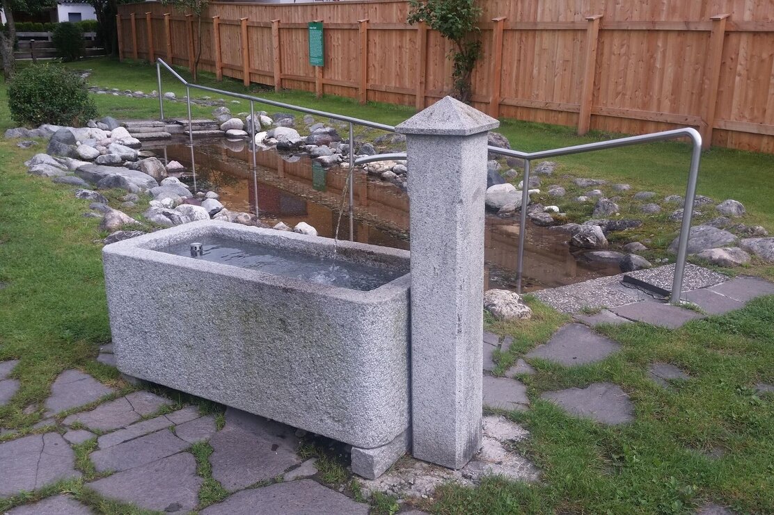 You have to walk a short stretch (about 200 m) eastwards along the federal road before the first turn on the left leads back towards the village (lower village). Here, go under the railway underpass and immediately turn right, follow the promenade along the railway about 200 m and at the first turning possibility turn left. Passing a small village brook, the path goes straight ahead northwards along the green windbreak to the Herz Jesu chapel in the Au. Here you can quench your thirst at the marble drinking fountain and use the chapel, consecrated in 2000 and built by the Radfeld marksmen, to gather your thoughts or simply rest.