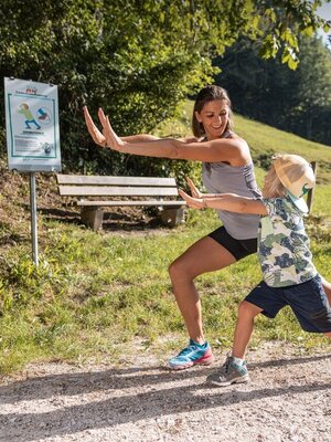 From the Reintalersee East parking lot (Regio bus stop Reintalersee Peninsula) pass the panoramic board and ascend the forest road to the "Natural jewel Berglsteiner See". Along the route, there are 12 exercise boards for the "Easy Learning Hiking Trail". These exercises improve learning and concentration skills (kinesiology). Information about the exercises and kinesiology at: www.bewegungswerkstatt.at by Herbert Handler