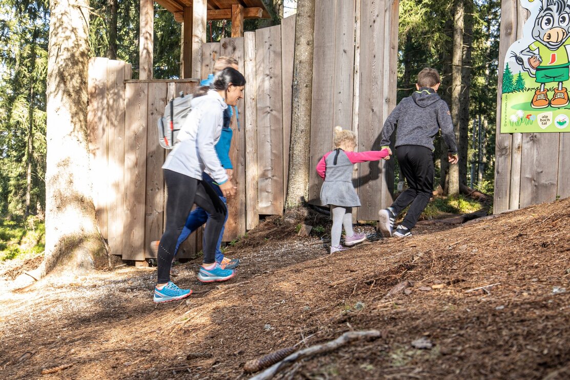 A few meters further the hiking trail leads towards Fürstenhof. Here awaits a petting zoo and Juppi's workbench (part of the Alpbachtal family program).