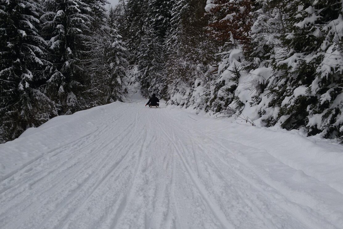 The special sledding route in Alpbachtal. A combination of mountain railway ride, hike and sledding!